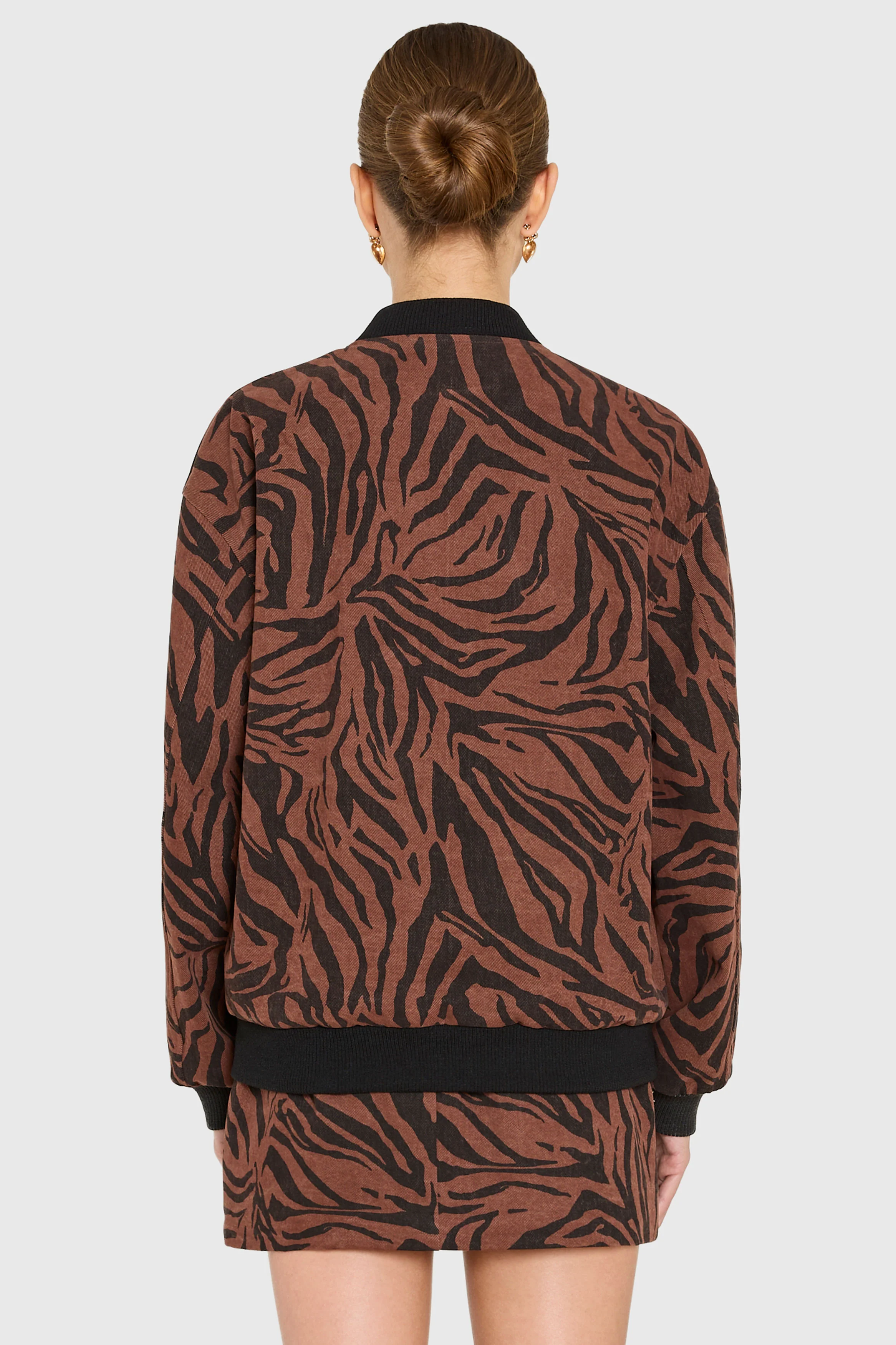 Go wild for the Vero Bomber Jacket. This modern take on animal print adds a touch of edge to any outfit. Pair with the matching Ines Top and Miles Skort for a playful head-to-toe ensemble, or layer over a turtleneck and your favorite jeans for a laid-back look.